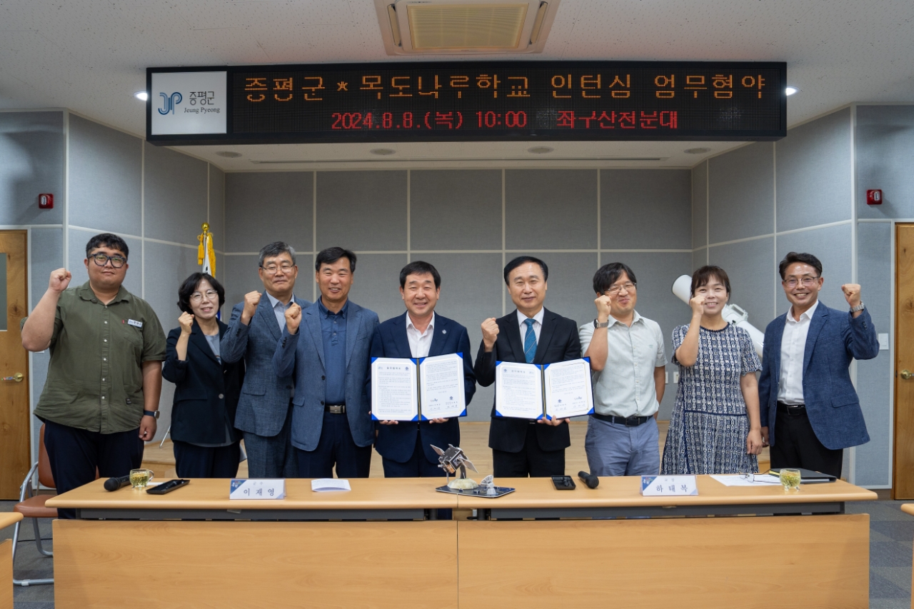 [증평공보뉴스] 이재근 기자 = 충북 증평군은 8일 목도나루학교(교장 하태복)와 좌구산천문대 인턴십 활동을 위한 업무 협약을 체결했다고 밝혔다.